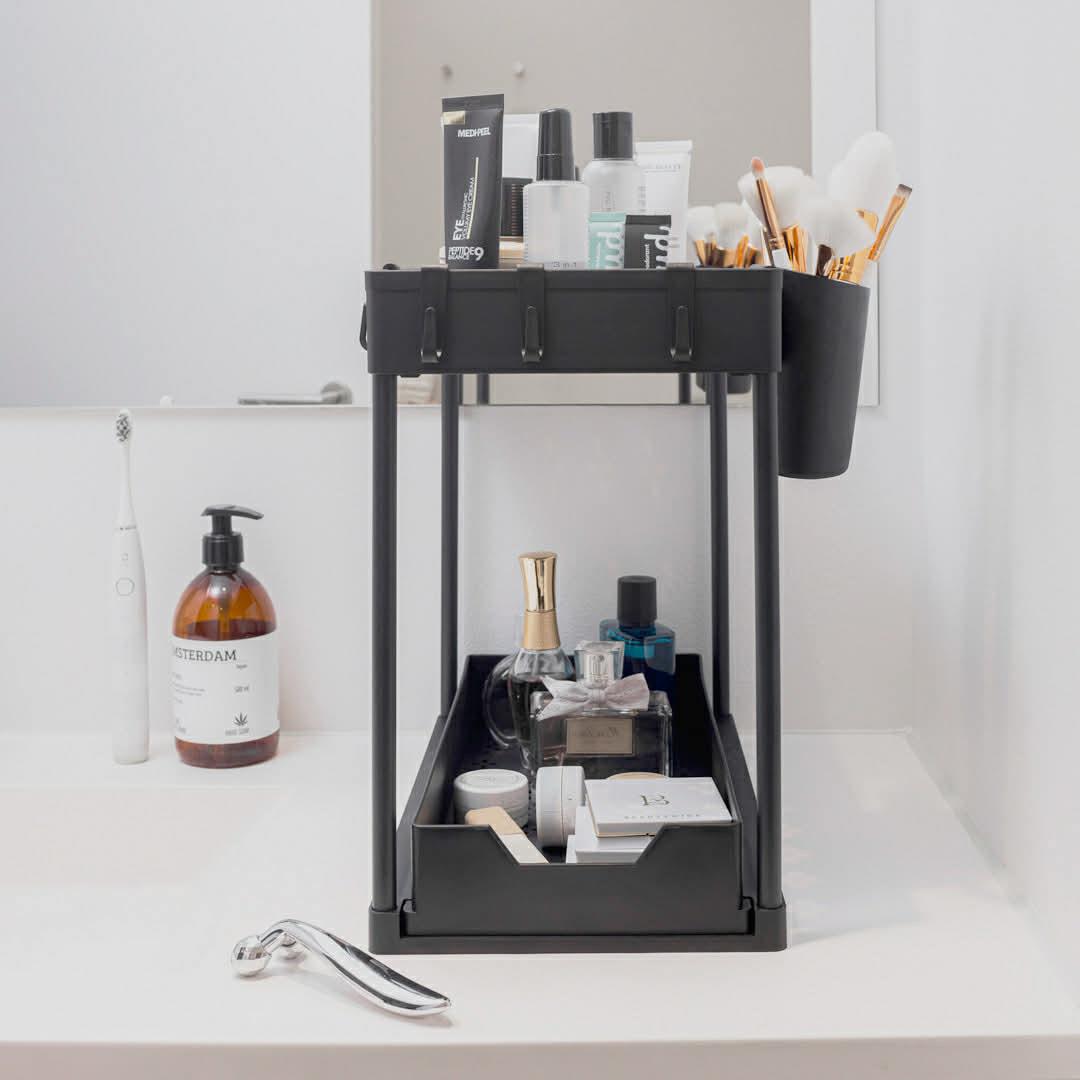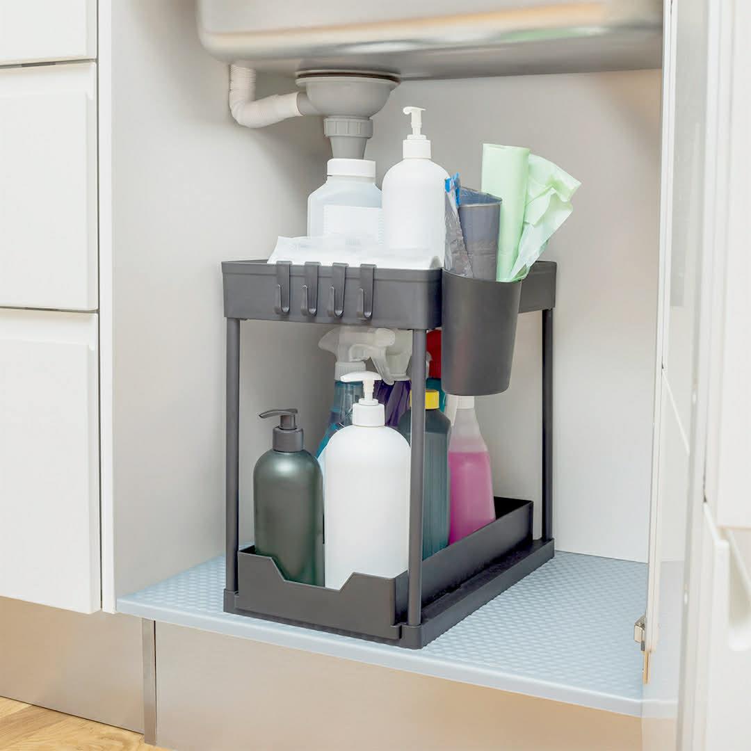 Denne alt-i-én organiser kan bruges i køkken, bad, bryggers, rengøringsskab, garderobe og meget mere.