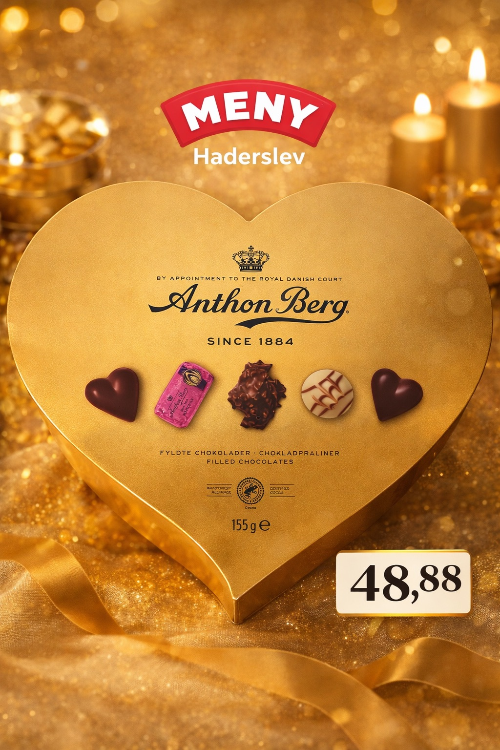 Lækker Anthon Berg hjerteæske 155 g fyldt med skønne chokoladepraliner 🍫✨