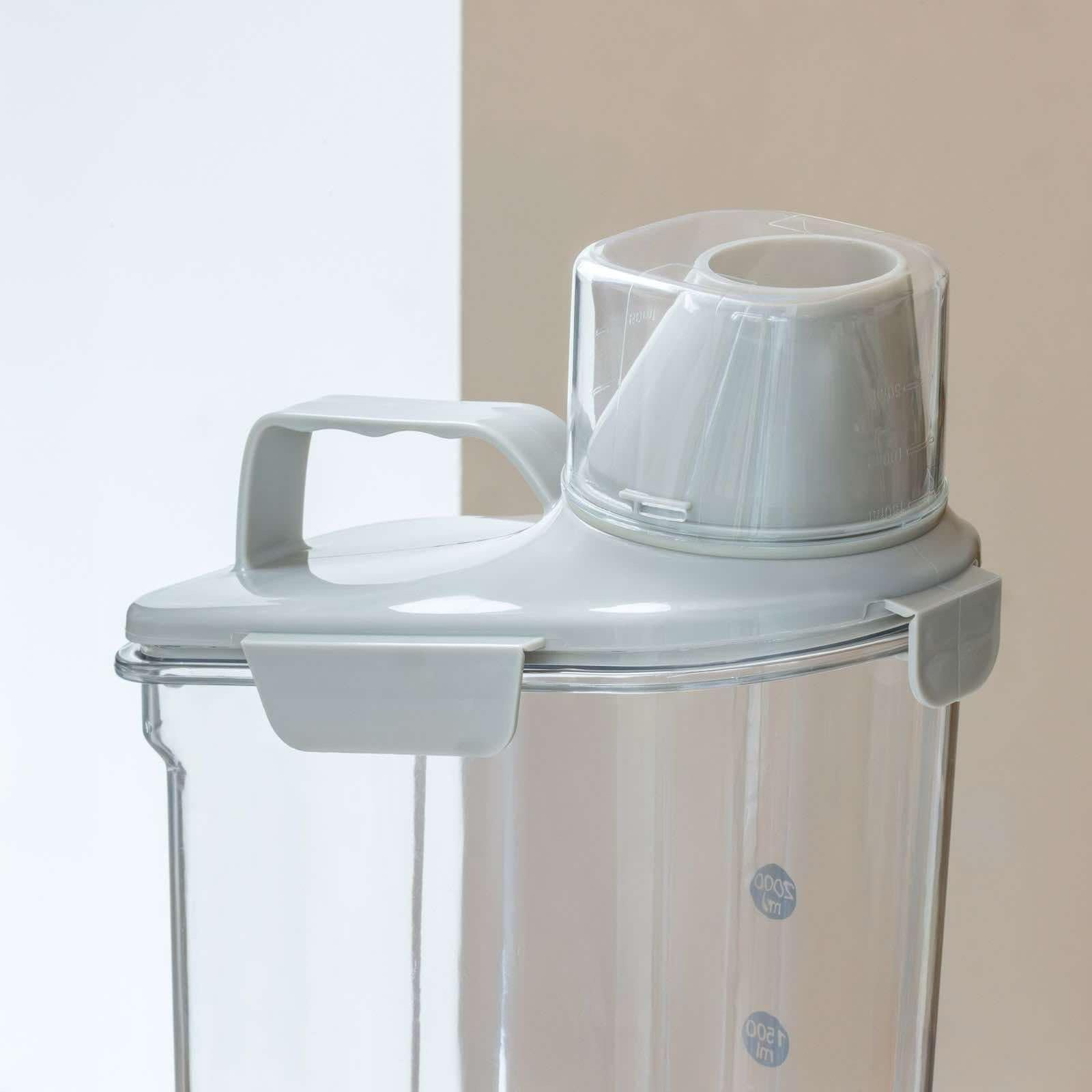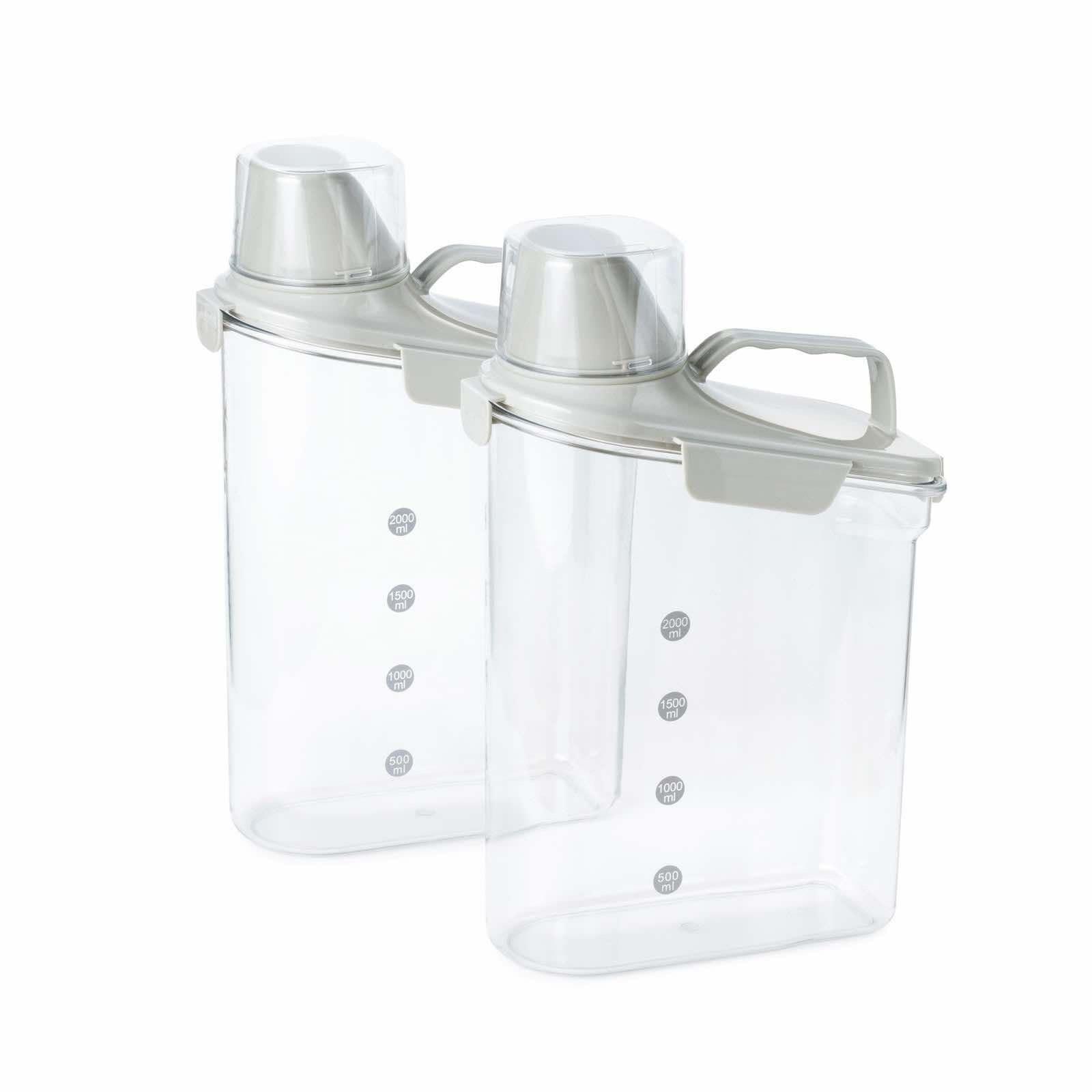 2 x beholdere med hældefunktion og målebæger