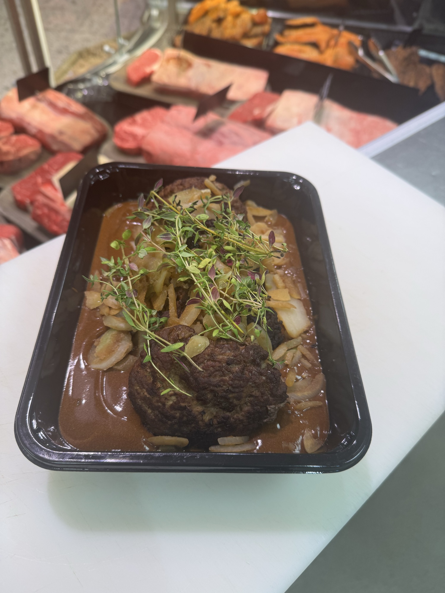 😍😍‼️‼️ JA TAK ‼️‼️😍😍 4 stk hakkebøffer med løg og brun sovs Afh fra i dag til fredag den 17/4 kl 18 I delikatessen Kun 79.95