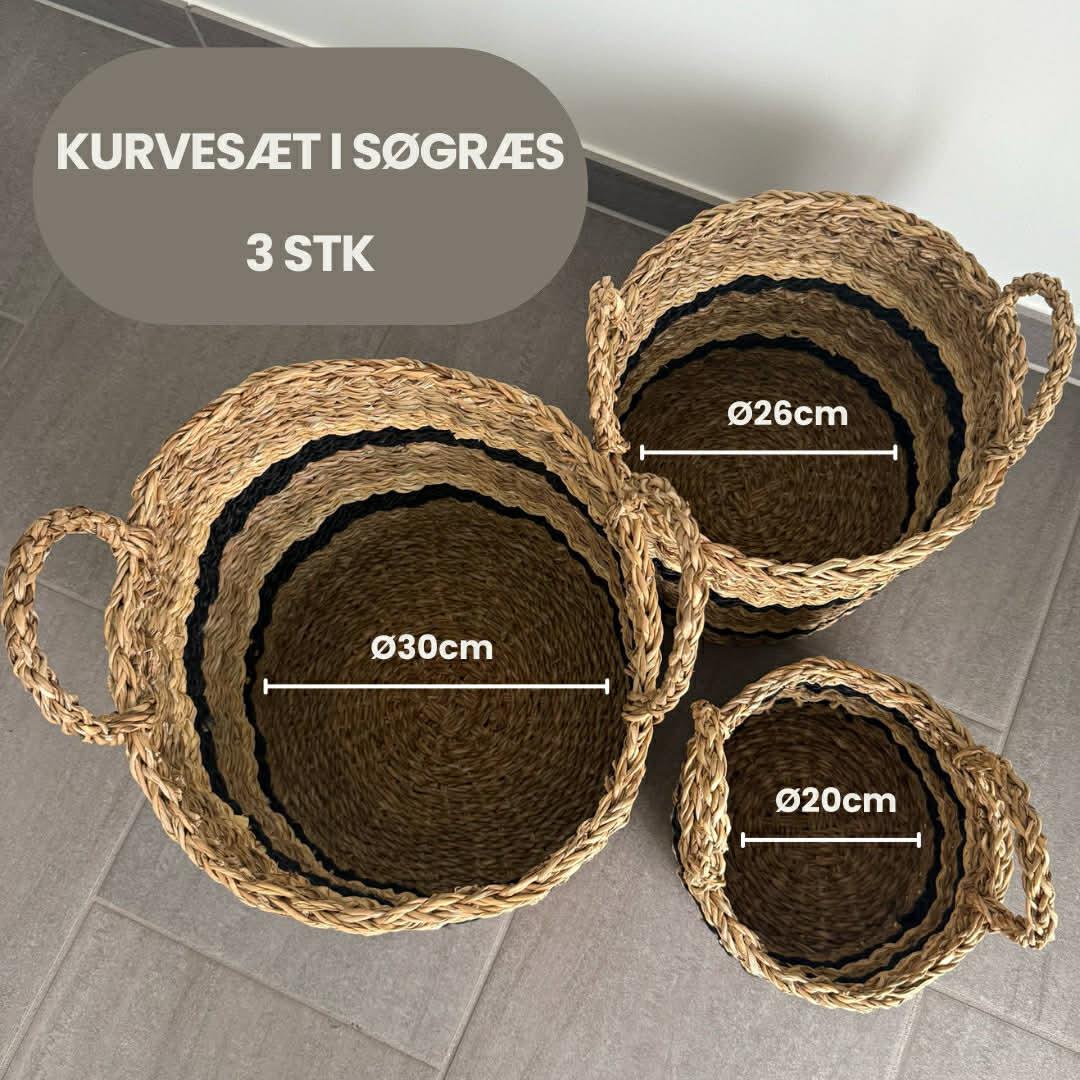 🧺 Naturlig opbevaring med stil – Nordis kurvesæt i søgræs, Ø30, Ø26, Ø20!